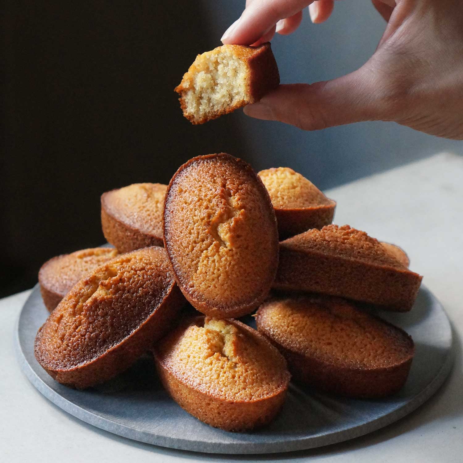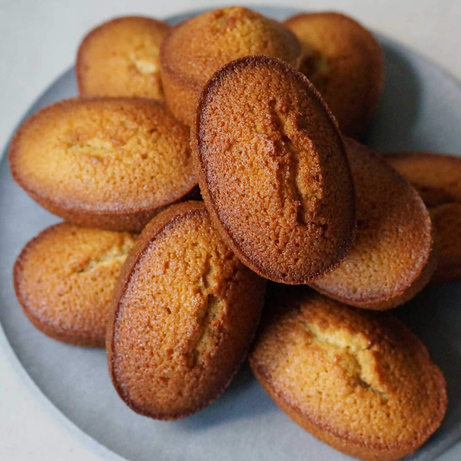 しっとりと焼き上げたhannocのフィナンシェプレーン。発酵バターの風味が豊かで、シンプルながら深い味わいが特徴です。香ばしいアーモンドの香りとバターのコクが口いっぱいに広がり、一度食べたら忘れられない美味しさ。