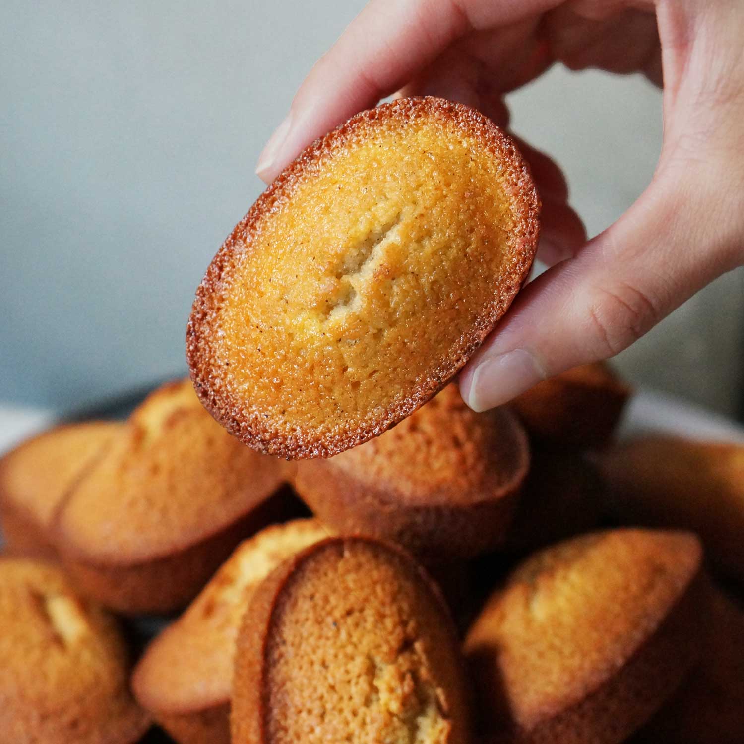しっとりと焼き上げたhannocのフィナンシェプレーン。発酵バターの風味が豊かで、シンプルながら深い味わいが特徴です。香ばしいアーモンドの香りとバターのコクが口いっぱいに広がり、一度食べたら忘れられない美味しさ。