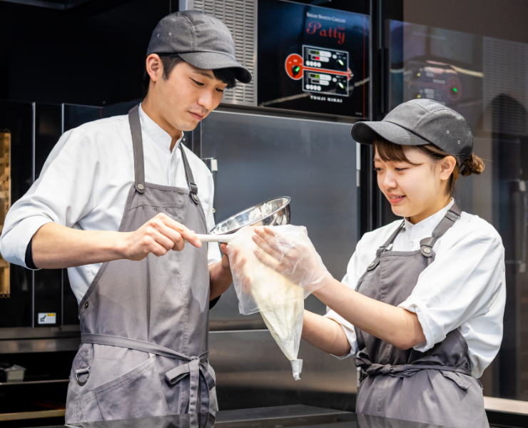 すべての指示をシェフが出すという今までの在り方を変え、若く瑞々しい感性を持つ次世代のパティシエたちが最前線に立ち、一人ひとりがお菓子を考えます。
