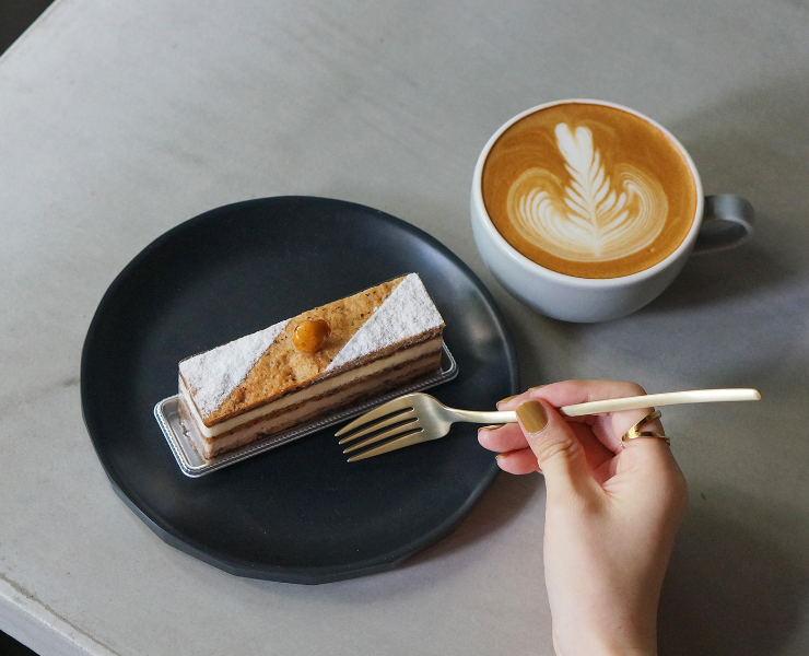例えば、店舗はお互いの表情が見えるガラス張りのオープンキッチン。パティシエは自分で作ったお菓子を、カフェにいるお客さんの元へ直接運びます。