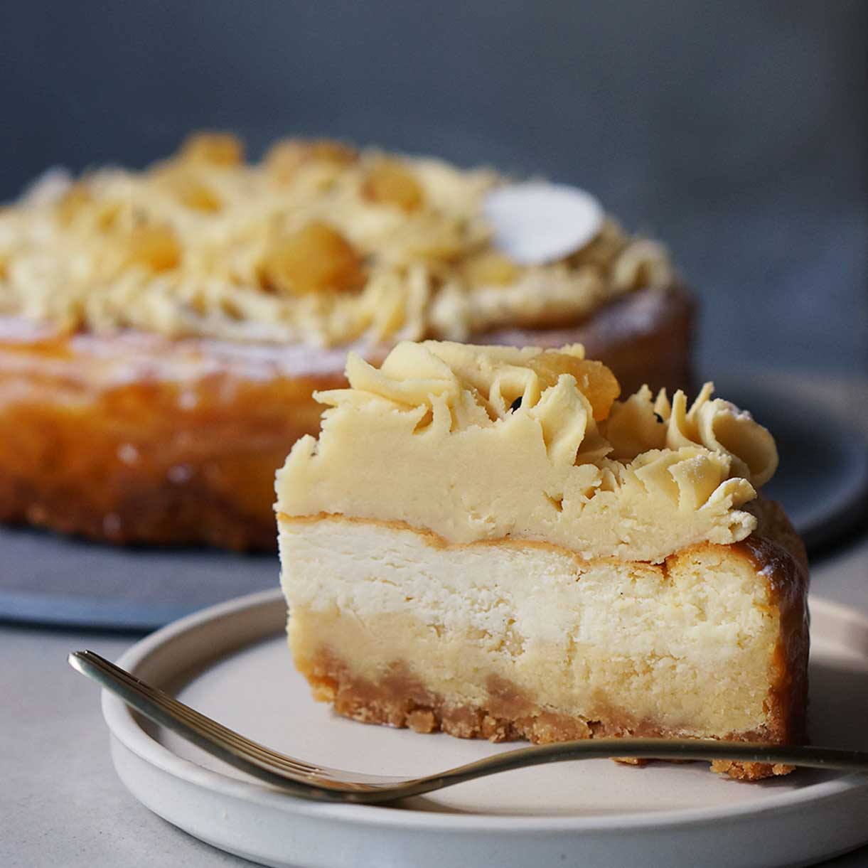 サクサクのクランブルクッキー生地に、鳴門金時のやさしい甘みを生かしたチーズ生地と、バニラがふんわり香るチーズ生地を重ねた2層仕立て。